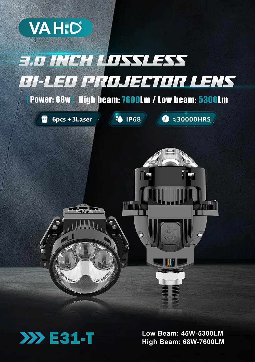 VAHID E31 LED Headlight Projector with 3 Lasers, 12V and 24 V Available, 6000K, 3.0 Inches